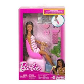 O conjunto Barbie Spa celebra uma das maneiras favoritas da Barbie de relaxar: fazer as unhas dos pés. O pó efervescente e a mudança de cor permitem que as crianças mergulhem na experiência. O conjunto inclui a boneca Barbie, seu cachorrinho, uma cadeira de salão com spa para os pés, dois pacotes de pó efervescente e acessórios para recriar uma manicure e pedicure várias vezes. As crianças podem encher o spa para os pés com água e adicionar um dos pacotes de pó efervescente para ver a espuma se formar como em um spa de verdade. Depois, basta usar a esponja e água fria para mudar a cor das unhas da boneca, tanto nas mãos quanto nos pés. A água morna reverte a cor para que a brincadeira possa continuar aproveite os resultados de um spa sempre. Um cachorrinho e acessórios temáticos aumentam a diversão.