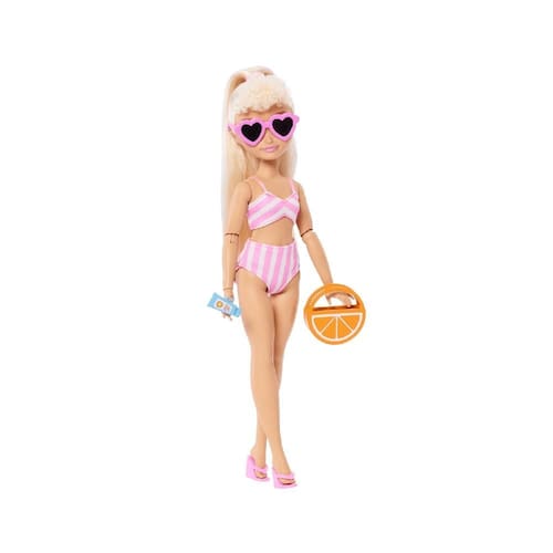 Design Temático de Praia: A Barbie Malibu apresenta um estilo praiano autêntico, com roupas e acessórios que refletem o espírito do verão, incentivando a imaginação e a criação de histórias.