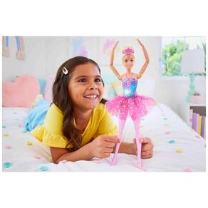 A Barbie Dreamtopia Twinkle Lights Ballerina é uma boneca bailarina articulada com recurso de iluminação no corpete, voltada para crianças a partir de 3 anos que gostam de balé e temas de fantasia. Ela vem com cabelo loiro preso em coque clássico, tiara decorativa e traje de balé com saia tutu rosa brilhante e sapatilhas de balé esculpidas nos pés.