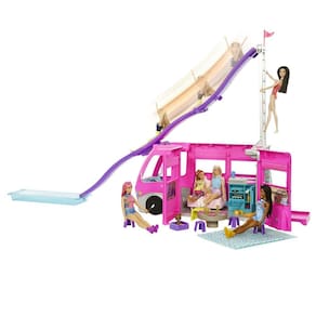 Descubra o incrível mundo da aventura ao ar livre com o conjunto de brinquedo Barbie Trailer dos Sonhos! Com uma imersão de p ossibilidades e detalhes encantadores, este conjunto é perfeito para crianças que adoram explorar a imaginação e criar histórias emo cionantes. Elas podem se imaginar embarcando na melhor viagem de acampamento ao lado da Barbie e suas amigas. Com suas sete áreas de brincadeira, este trailer é o sonho de qualquer criança. Ele possui até um escorregador incrível que garante diversão ilimitada! As crianças podem levar suas bonecas favoritas para um passeio, pois o trailer possui rodas e uma cabine com dois assentos, permitindo que elas dirijam até o destino dos sonhos.Ao chegar, o trailer se abre para revelar um mundo de possibilidades. Há uma cozi nha totalmente equipada para preparar deliciosas refeições, uma área de alimentação aconchegante para compartilhar momentos especiai s, um local para dormir confortável, um banheiro para garantir o máximo de conforto, uma piscina refrescante para os dias ensolarado s, um escorregador emocionante para descer e até mesmo um recanto com uma TV para relaxar e assistir a filmes divertidos.A d iversão não para por aí! Com uma folha de adesivos temáticos de acampamento, as crianças podem personalizar o carro da Barbie e deix á-lo ainda mais estiloso. Depois, é hora de soltar a imaginação e explorar todas as possibilidades de contar histórias com mais de 6 0 peças, incluindo dois filhotinhos adoráveis! As crianças podem ajudar a boneca Barbie e seus amigos a subir as escadas, deslizar p elo escorregador e mergulhar na piscina para um mergulho refrescante. Quando chegar a hora de seguir para a próxima aventura, é só g uardar tudo dentro do trailer e fechá-lo para pegar a estrada novamente. Com sua versatilidade e funcionalidade, este conjunto é per feito para crianças a partir de 3 anos. Ele oferece um mundo de possibilidades e ajuda a desenvolver habilidades de narrativa, imagi nação e coordenação motora. As bonecas não estão incluídas no conjunto. As cores e decorações podem variar.