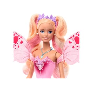A Barbie Fada Cores Mágicas traz toda a fantasia do mundo da Barbie para a diversão das crianças. Com sua varinha mágica e o poder da água, esta boneca encantadora transforma os corações de suas asas de um rosa suave para um vermelho deslumbrante. Basta mergulhar a esponja estrelada em água fria e passar nas asas para ver a mágica acontecer.