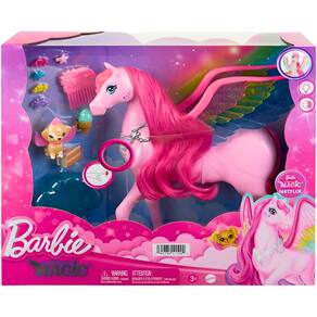 Deixe a imaginação voar com as asas desta Pégaso rosa da Barbie! As crianças podem reproduzir as cenas favoritas de Barbie A Touch of Magic ou criar suas próprias histórias incríveis. A Pégaso tem luzes e sons das cores do arco-íris ativados de várias formas. Ela também vem com um cachorrinho mágico e lindos acessórios! As cores e as decorações podem variar.