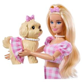 Se divirta em dobro na hora de se arrumar com os kits Barbie Twinning Looks! Cada boneca Barbie vem com um cachorrinho adorável usando uma roupa combinando. Acessórios combinando completam o visual dessa dupla estilosa, dos pés à cabeça! Laços, colares e muito mais dão um toque extra de personalidade. Seja para um passeio no parque ou uma voltinha no shopping, Barbie e seu pet estão prontos para tudo!Combinando, a boneca Barbie e seu cachorrinho vêm com looks em xadrez gingham rosa. Ela usa saltos rosa e um conjunto de duas peças com mangas bufantes e laço, enquanto seu cachorrinho veste uma saia com babados e laço!Acessórios em dose dupla: com óculos meia armação, colares de pérolas e laços de cabelo cor-de-rosa, a dupla fica ainda mais fashion!Acessórios combinando de verdade: uma coleira rosa com guia e bolsas térmicas verde-menta deixam a brincadeira ainda mais divertida.Depois de vestir a Barbie e seu pet com looks combinando, as crianças podem criar cenas e poses incríveis. A boneca tem articulações dobráveis para deixar a brincadeira ainda mais realista!