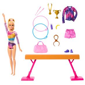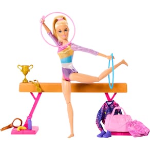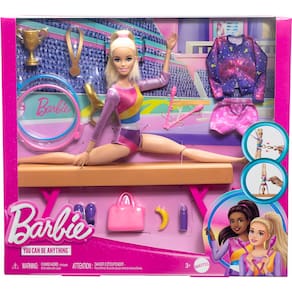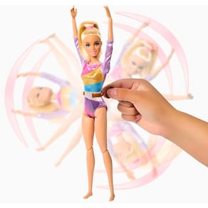 As crianças vão adorar esse conjunto de ginástica da Barbie com boneca fashion, recurso de salto com giro e mais de 10 acessórios para os eventos favoritos dos fãs! As peças adicionais para contar histórias incluem bastões, aros, um troféu e um traje de aquecimento para realmente esquentar a competição. Para crianças a partir de 3 anos de idade. A boneca não pode ficar em pé ou virar sozinha. As cores e as decorações podem variar.