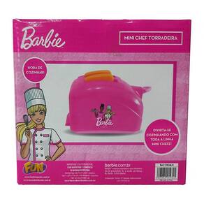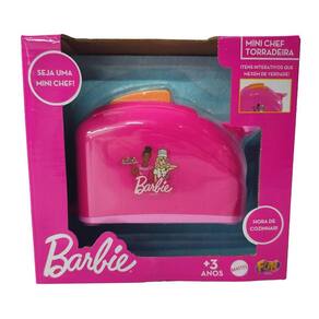A Barbie Mini Chef Torradeira possui a cor rosa, um design característico da linha Barbie que atrai e encanta as crianças.