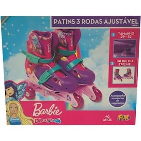 Barbie - Patins 3 Rodas Ajustável 29 à 32 - Com acessórios de segurança