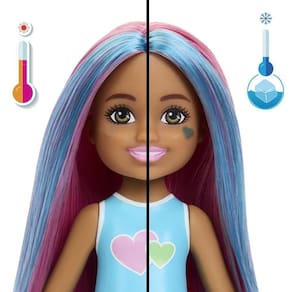 Contém: 1 boneca pequena Chelsea perfumada e com mudança de cor, 1 animal de estimação perfumado, 1 saia, 1 par de sapatos e 1 acessório para o animal de estimação.