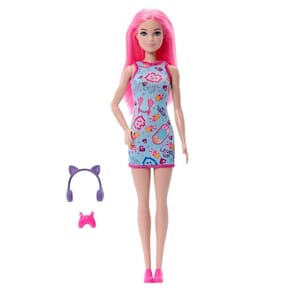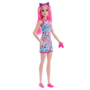 O vestido colorido com estampa temática gamer traz toda a energia do universo digital, enquanto os acessórios, como o fone de ouvido com orelhas de gato e o controle de videogame rosa, deixam a brincadeira ainda mais imersiva. Com roupas e sapatos removíveis, a Barbie permite diferentes combinações, incentivando a expressão e a imaginação.