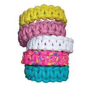 O kit inclui fios em 5 cores vibrantes, permitindo diversas combinações para suas pulseiras.