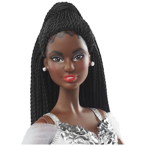 A Barbie Signature 2021 Holiday versão morena com tranças é uma boneca colecionável temática de fim de ano, desenvolvida para representação de cenas festivas e exposição em vitrines ou prateleiras. O modelo utiliza corpo do tipo Model Muse, indicado para poses estáticas, com silhueta desenhada para vestidos longos e composições de moda.