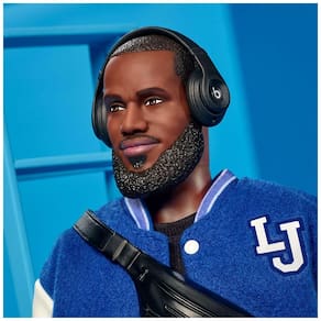 A boneco colecionável LeBron James Kenbassadors da linha Barbie Signature representa o jogador em uma proposta de colecionismo voltada a fãs de basquete e de cultura pop, com foco em acabamento detalhado e visual de streetwear contemporâneo. A figura traz o atleta com jaqueta bomber varsity, calça xadrez, tênis, boné e camiseta temática, acompanhada de acessórios que enriquecem a exposição em prateleiras ou vitrines.