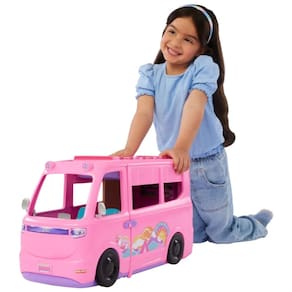 Você pode ir para o ar livre com o Conjunto Barbie Camper dos Sonhos, com 7 áreas de lazer e mais de 60 acessórios, incluindo um filhote de cachorro, para inspirar infinitas histórias de acampamento!