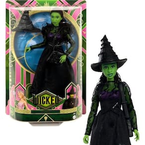 A partir de agora, a brincadeira vai ficar ainda mais divertida com a boneca Wicked Elphaba da Mattel. Ela é articulada e acompanha acessórios (1 Vestido removível, 1 Chapéu, 1 Par de botas e 1 Bolsa escolar). diversão sem fim. Inspirada no filme Wicked, da Universal Pictures, a boneca Elphaba captura a essência da icônica personagem. Vestida com seu traje removível fiel ao filme, mochila escolar e seu característico chapéu pontudo, Elphaba pode assumir poses dinâmicas graças à flexibilidade no tronco, cotovelos, pulsos e joelhos. A boneca também exibe seu visual icônico, com cabelo longo trançado e a pele verde que a torna inconfundível.