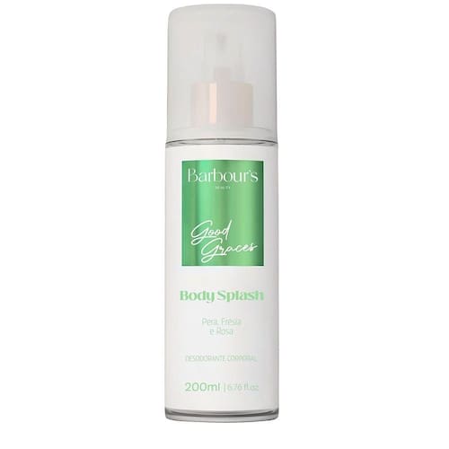 O Barbour's Good Graces Body Splash é uma bruma corporal fresca e elegante, perfeita para a mulher sofisticada e otimista que busca um aroma frutado floral para iluminar o dia a dia. Inspirado em English Pear & Freesia, ele une pera suculenta e melão a um coração de frésia e rosa, finalizando em fundo quente de patchouli e âmbar, proporcionando uma sensação de frescor prolongado e bem-estar, transformando a pele em uma aura de encanto natural, criando uma conexão emocional de leveza e autoconfiança que desperta admiração sutil.