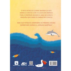 "Quando você observa patinhos na lagoa, nadando tão sossegados, imagina que um deles pode gostar de uma aventura? Pois o Petrúcio é assim, um pato que quer cruzar os mares e conhecer o mundo! Resolveu construir um barco a vela e pediu o apoio dos amigos. O porco, a preguiça e a coruja prontamente ajudaram, mas na hora de embarcar... todos ficaram ressabiados. Será que Petrúcio vai seguir em frente com os seus planos de viagem?