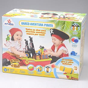 Todos os dias uma nova aventura espera por você com esse incrível Barco Aventura Pirata.O Canhão gira e atira bolinhas, o timão gira, possui cesta de vigia e rodinhas para puxar.A caixa tem personagens em papelão para recortar e criar a sua aventura. - Acompanha 2 Bolinhas e 2 Bonecos Mini Piratas- Dimensões: (C x L x A): 44,5 x 21,5 x 29,5 cm- Recomendável para maiores de 3 anos- Embalagem: Caixa- CE-BRI/BRICS 000 770/2019 OCP 0098