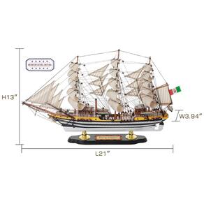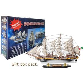 Meticulosamente construído com madeira de tília e um detalhado cordame de velas feito de tecido costurado à mão, o Amerigo Vespucci é uma recriação fiel do icônico navio, lançado em 22 de fevereiro de 1931. Com dimensões de 53,34 cm x 10,01 cm x 33,02 cm, ele é um deleite visual para colecionadores e entusiastas da náutica.