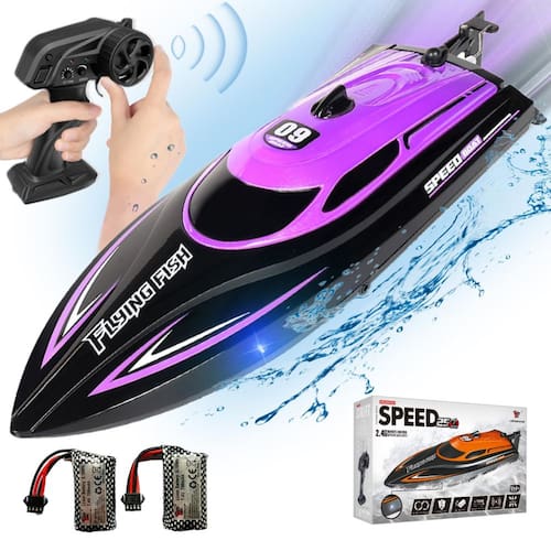 Barcos RC - Barcos de controle remoto de alta velocidade para adultos e crianças -?Barco RC de alta velocidade?O barco RC tem uma aparência moderna e um design científico de casco de baixa resistência, com um motor de alta potência, sua velocidade de viagem é de até 20 MPH ou mais, com 2 baterias recarregáveis de longa duração para proporcionar aos jogadores uma experiência competitiva e de entretenimento mais duradoura. -?Função poderosa?Ele não só tem a função de demonstração com uma tecla na figura 8, mas também tem a função de autorrecuperação após o emborcamento, o que evita o problema da pesca manual. Com luzes LED brilhantes, torna a condução mais suave à noite e evita a perda do barco com controle remoto. -?Fácil de controlar?O controle remoto adota a avançada tecnologia 2.4G, para que vários barcos RC não interfiram uns com os outros ao jogar ao mesmo tempo. O controle remoto tem uma distância de controle de 500 pés, e a distância de controle extra longa pode proporcionar aos jogadores uma experiência de jogo mais emocionante. -?Durável?O interior do casco é projetado com função de resfriamento de água circulante, que pode resfriar continuamente o motor funcionando em alta velocidade durante o trabalho do barco RC, prolongando efetivamente a vida útil do motor; a tampa da cabine adota tecnologia avançada de vedação, para que o barco RC fique imerso em água por um longo tempo, a cabine não receberá água. -?Presentes e serviços?O barco com controle remoto de alta velocidade é um brinquedo aquático muito divertido para adultos e crianças. Possui uma linda embalagem de presente, que é a melhor escolha para presentear em vários festivais. Se você encontrar algum problema, com a RANFLY a tempo, teremos o maior prazer em atendê-lo.