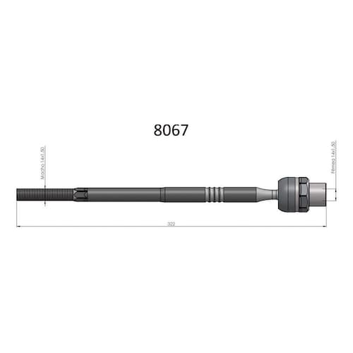 Barra axial corsa 94/02 celta 00/15 prisma 06/12 323mm c/dm Barra axial 323mm copo femea m14x1,5 haste macho m14x1,5 com direcao mecanicaCódigo do fabricante:Bortec ba 8067Aplicações:Corsa 94/95/96/97/98/99/00/01/02Corsa sedan 94/95/96/97/98/99/00/01/02Classic 02/03/04/05/06/07/08/09/10/11/12/13/14/15Corsa wagon 97/98/99/00/01/02Corsa pick up 95/96/97/98/99/00/01/02Celta 00/01/02/03/04/05/06/07/08/09/10/11/12/13/14/15Prisma 06/07/08/09/10/11/12Montana 11/...Tigra 97/98/99/00