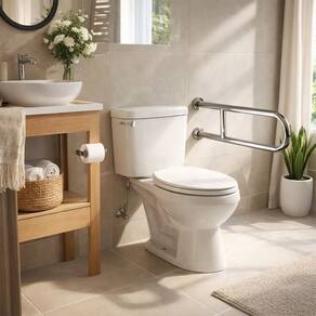 Seu design ergonômico facilita o apoio ao sentar e levantar, reduzindo significativamente o risco de quedas.