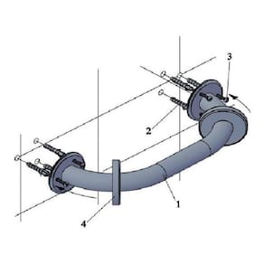 Instalação: 1º Posicione a barra de apoio e marque os furos 2º Faça os furos e instale as buchas nº 8 3º Posicione a barra de apoio nos furos e aparafuse de forma firme 4º Utilize as canoplas para tampar os parafusos