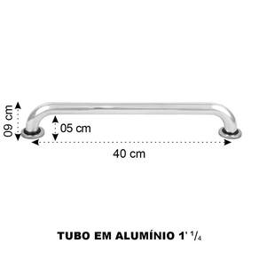 Suporta até 150kg - Produzida em alumínio 11/4 31,75 mm - Segue a norma ABNT. NBR 9050 - Não enferruja - Não oxida - Acompanha canoplas, buchas e parafusos para a Instalação. Marca: Gmc Metais Ean: 7898606830878