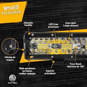 Barra off road de led tem 3 vezes mais potente que as comuns similares, pois possui muito mais chips de led, além de foco duplo/combo com maior abertura lateral de 150º e longo alcance com lentes de 30º.
