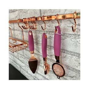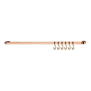 Esta barra otimiza os espaços da cozinha, pois com os utensílios fixados na parede, a bancada e a pia ficam livres para a preparação dos alimentos. Acompanha 6 ganchos para pendurar garfos, conchas e colheres que possuem furação no cabo. Além do tradicional tratamento superficial da Future - onde são aplicadas até 4 camadas de metal - os produtos são revestidos com uma camada extra do protetivo especial Rust Free, garantindo cores vivas e brilhantes, além de maior resistência contra ferrugem.Especificações:- Material: Aço Carbono- Dimensões: 30cm (comprimento) x 4cm (profundidade) x 1,5cm (altura) x 0,5cm (espessura da barra)- Peso: 260g- Cor/Acabamento: Rose Gold- Fixação: Parafuso (kit para fixação acompanhar o produto)- Embalagem contém: 1 barra piatina em aço carbono de 30cm + 6 ganchos em aço carbono + 1 kit pra fixação na parede.- Possui Tecnologia Rust Free: Resistente ao ferrugem, aos raios UV e à umidadeOBS: Os acessórios da foto não acompanha o produto.