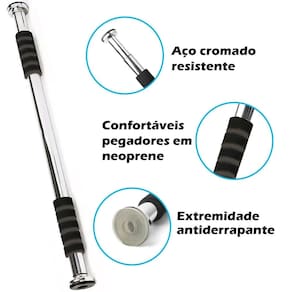 Barra de Porta Ajustável para Flexão - Musculação e Treinamento em Casa Transforme seu treino em casa com a nossa Barra de Porta Ajustável para Flexão Ideal para quem busca fortalecer a parte superior do corpo, esta barra oferece um treino eficaz e conveniente sem precisar sair de casa. Características:design Ajustável: A barra de porta é ajustável, permitindo que você encontre a altura e a largura ideais para a sua porta, garantindo uma fixação segura e personalizada para diferentes exercícios. Construção Robusta: Fabricada com materiais de alta qualidade e resistência, a barra é projetada para suportar o peso do corpo e oferecer estabilidade durante as flexões e outros exercícios. Fácil Instalação: Sem necessidade de ferramentas complicadas, a instalação é rápida e simples. Basta ajustar a barra na moldura da porta e começar a treinar. Versatilidade de Exercícios: Além das flexões, a barra é perfeita para diversos exercícios de treinamento de força, como elevações, abdominais e mais, aumentando a variedade e eficácia do seu treino. Compacta e Portátil: Ideal para uso em casa, no escritório ou em viagens, a barra é fácil de desmontar e armazenar, ocupando pouco espaço. Eleve sua rotina de exercícios com a Barra de Porta Ajustável para Flexão e alcance seus objetivos de musculação com praticidade e conforto. Garanta a sua hoje mesmo e comece a treinar de forma mais eficiente Medidas: Comprimento: 60cm até 100cm Altura e Largura: 3cm Marca: Mhr