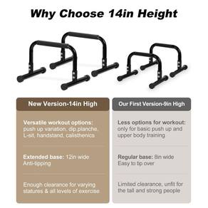 Por que você deve escolher uma barra push-up? Vários profissionais esportivos indicam que uma maior amplitude de movimento pode ser alcançada com uma barra de flexão. E com o ângulo de aderência confortável da barra de flexão, seus pulsos estarão protegidos contra lesões. Você pode usar a barra de flexão para uma variedade de exercícios, como variações de flexão, sentar em L, apoio de mão, etc., construindo efetivamente os músculos do peito, braços, costas e núcleo. Atualize sua academia em casa com as barras de pressão de aço resistente TABEKE e comece a experimentar os benefícios do treinamento de força versátil e eficaz hoje! Características: 1. A altura perfeita de 35,5 cm aumenta sua amplitude de movimento. O aço resistente de 2,1,8 mm suporta até 299 kg. 3. O cabo de espuma de alta densidade reduz a dor no pulso e a fadiga da mão. 4. A capa antiderrapante ajustável para pés oferece estabilidade extra. 5. Ideal para todos os níveis para fazer exercícios versáteis. 6. Fácil de montar e armazenar - ?Resistente e durável?Feito de aço ultradurável de 1,8 mm, as barras paralelas podem suportar até 299 kg. O design confiável da base estendida evita efetivamente que as paraletas balançem e tombem. Em comparação com barras push up de plástico frágeis, nossa estrutura de aço oferece estabilidade incomparável, mais do que suficiente até mesmo para exercícios de alta intensidade! O revestimento de tinta assada de alta qualidade resiste ao descascamento e à ferrugem para manter seu acabamento suave para maior durabilidade. - ?35,5 cm de altura para treino de corpo inteiro?A altura atualizada de 35,5 cm oferece a você uma melhor amplitude de movimento, que não apenas oferece opções de treinamento mais versáteis, como flexões amplas, flexões padrão, sentar, mergulhos e suportes de mão, mas também ajuda a fortalecer os músculos dos braços, ombros, peito, costas e abdominais. Seja você um iniciante ou um entusiasta experiente de esportes, nossa barra de mergulho é uma adição essencial ao seu equipamento de ginástica. - ?Alça de cobertura total e pés de borracha ajustáveis?O cabo de espuma totalmente acolchoado com diâmetro de 3,8 cm oferece espaço suficiente para aderência e experiência de aderência confortável. Em comparação com barras de metal, o material de espuma espessa é resistente ao suor e ao deslizamento, proporcionando amortecimento para seus pulsos. Os pés ajustáveis são feitos de borracha para evitar deslizamento. Seu design exclusivo com diferentes espessuras permite que você gire e ajuste facilmente para se adaptar a terrenos irregulares, aumentando a estabilidade durante o treino. - ?Fácil de montar e portátil?Com as ferramentas de chave de fenda incluídas, as barras push up levam apenas 2 minutos para você instalar e desmontar, o que significa que você pode levá-las para a academia ou ao ar livre facilmente. Você pode começar a formar músculos e aproveitar ao máximo seu tempo de exercício, não importa onde você esteja. - ?Não se preocupe em comprar?Peça hoje e obtenha uma cobertura de 180 dias nas barras paralelas. Estamos dedicados a fornecer atendimento ao cliente satisfeito. Se você tiver alguma dúvida, a qualquer momento. Nós lhe daremos uma resposta imediata dentro de 24 horas. Desfrute de um treino de corpo inteiro com nossas barras push up TABEKE