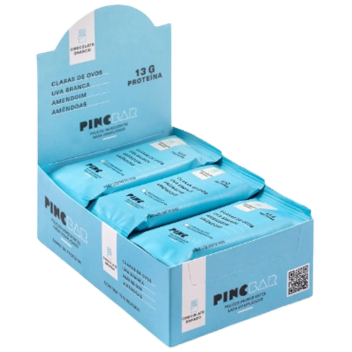 A Barra de Proteína Chocolate Branco Sem Açúcar 50g Pincbar 12 Unidades é adoçada com uva branca e um chocolate branco zero adição açúcar à base de leite de coco. Não contém lácteos e conservantes artificiais.