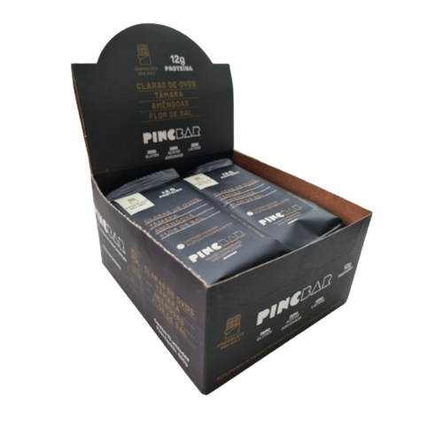 A Barra de Proteína Chocolate Sea Salt Sem Açúcar 50g Pincbar 12 Unidades é adoçada com tâmaras e um chocolate 51% zero adição açúcar. Não contém lácteos e conservantes artificiais.