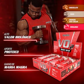 Uma opção prática, saborosa e extremamente nutritiva para o seu dia a dia. A VO2 Whey Bar é um alimento proteico para se manter na dieta, alcançar a ingestão de proteínas diárias e ainda aproveitar para comer um doce sem culpa.
