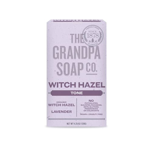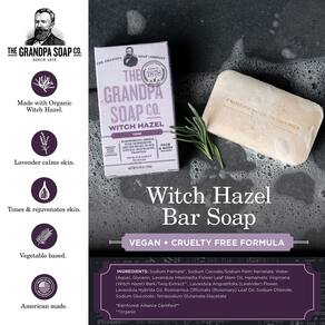 - SABONETE EM BARRA DE HAMAMÉLIS A propriedade adstringente da hamamélis orgânica é aprimorada pela relaxante lavanda em uma fórmula suave que tonifica e rejuvenesce suavemente. O sabonete em barra Witch Hazel é o sabonete preferido após um longo dia de trabalho — feito com ingredientes que funcionam tanto quanto você.