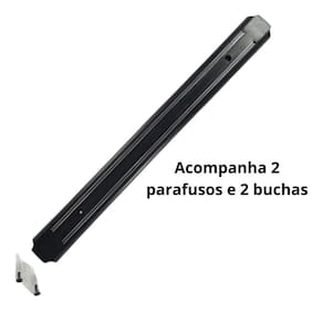 Olá, será um prazer atender seu pedido somos uma empresa séria e nos preocupamos em todas as etapas do processo para que seu pedido chegue até você da maneira que você espera. Emitimos para pessoas fisicas e jurídicas. Informações do produto:- cor: preto- medida: 50 cm x 4,9 cm- medidas do furo: 8,5 cm considerando das extremidades da barra conforme imagem - resistente- material: plástico, imã e aço inox- fixação: parafuso e bucha inclusos com o produto contém:- 1 barra magnética com imã para facas e ferramentas- 1 par de parafusos e buchas