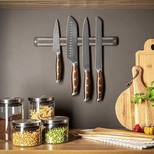 Com imãs nas suas extremidades, a Barra Magnética para Facas e Ferramentas pode ser fixada na parede com dupla face ou parafusos. Desta forma, mantém utensílios e ferramentas acessíveis e os ambientes arrumados, liberando mais espaços em armários e gavetas.