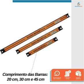 Especificações Técnicas: Comprimento das Barras: 20 cm, 30 cm e 45 cm Parafusos e Buchas: Acompanha 6 parafusos 4 mm x 35 mm e 6 buchas 6 mm x 30 mm Material: Aço imantado Embalagem: Cartela blister Ref.: 02005581 Marca: Starfer