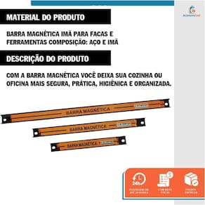 Especificações Técnicas: Comprimento das Barras: 20 cm, 30 cm e 45 cm Parafusos e Buchas: Acompanha 6 parafusos 4 mm x 35 mm e 6 buchas 6 mm x 30 mm Material: Aço imantado Embalagem: Cartela blister Ref.: 02005581 Marca: Starfer