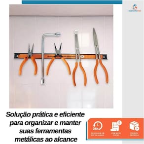 Aplicação: Indicado para pendurar e organizar ferramentas metálicas, o conjunto garante que suas ferramentas estejam sempre organizadas, evitando desordem e facilitando o acesso.