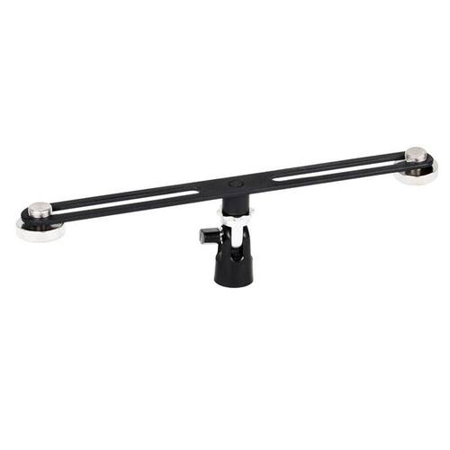 Barra para captação em stereo duplo -montagem simples e profissional. Adequado para qualquer pedestal de microfone com rosca padrão 5/8. -capacidade:2 microfones. -dimensões Largura total: 300 mm Largura ajustável: 80-275 mm -inclinação: 100 -material: aço -cor: preto -acessório ideal para captação de sons em stereo,com o uso de apenas um suporte de microfone.Aplicação em vocais,instrumentos como bateria,piano,violoncelo,etc. Não acompanha cachimbos e/ou microfones Marca: Não Informado