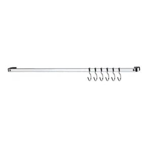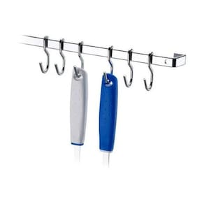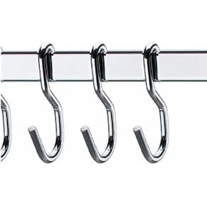 Especificações:- Material: Aço Carbono- Dimensões: 45cm (comprimento) x 4cm (profundidade) x 1,5cm (altura) x 0,5cm (espessura da barra)- Peso: 340g- Cor/Acabamento: Cromado- Fixação: Parafuso (kit para fixação acompanhar o produto)- Embalagem contém: 1 barra piatina em aço carbono de 45cm + 6 ganchos em aço carbono + 1 kit pra fixação na parede.OBS: Os acessórios da foto não acompanha o produto.Dicas de uso:- Para limpeza periódica recomenda-se o uso de um pano macio, água e sabão neutro.- Nunca utilize materiais abrasivos como esponjas ásperas ou produtos químicos corrosivos (cloro, água sanitária).