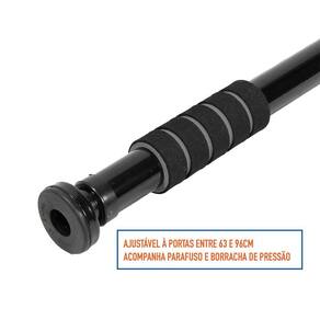 BARRA AJUSTAVEL - Possui sistema de pressão para fixação, adaptável a qualquer batente de porta entre 63 e 96cm. Sua estrutura em aço, material resistente que suporta até 100 kg, com pegada em espuma para maior conforto durante o exercício