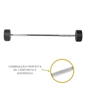 Barra montada reta, com peso de aço dentro. Durável, muito resistente e com extremidade revestida. Produzida em borracha e ferro. Comprimento interno 95cm.Especificações TécnicasCor: Preto e amareloTamanho: interno 95cmDimensões: 28mmGarantia: 03 mesesConteúdo da Embalagem: 1 barra montada Imagens meramente ilustrativas Marca: Não Informado