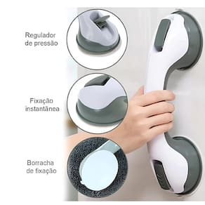 Barra de Apoio para Banheiro com Ventosas, para Segurança de IdososEspecificações:- Cor: Branca com detalhes em cinza- Ventosas: 9,5 cm- Diafragma: 1,3 mm- Medidas: 29,4 x 9,6 x 8 cmCaracterísticas:A barra de apoio com fixação por ventosas possui um sistema de trava dupla por sucção super resistente. Sua instalação é rápida e não requer furos nas paredes nem o uso de adesivos. A fixação por sucção permite que a barra seja removida e reposicionada facilmente, sem causar bagunça ou danos.Leve e portátil, pode ser transportada em uma bolsa de viagem, garantindo segurança em qualquer lugar. Pode ser posicionada em qualquer ângulo, desde que seja em uma superfície lisa.Indicações de uso:Ideal para servir de apoio a pessoas idosas, com deficiências motoras ou em recuperação de fisioterapia. Também ajuda na prevenção de acidentes para pessoas na terceira idade.Superfícies compatíveis:A barra de apoio com ventosas funciona perfeitamente em materiais cerâmicos como porcelanatos, azulejos, fibra de vidro e outras superfícies polidas e lisas. Pode ser aplicada em alguns metais, dependendo do acabamento e pintura.Superfícies incompatíveis:A barra de segurança com ventosas não é adequada para madeira ou paredes de alvenaria.Instalação:A instalação é simples e rápida, sem necessidade de ferramentas:1. Puxe para fora as duas ponteiras plásticas nas extremidades da barra, certificando-se de que as ventosas estejam secas.2. Posicione a barra no local desejado, que deve estar limpo e seco.3. Aperte as travas para pressionar o diafragma da membrana contra a superfície, garantindo a fixação total.Cuidados e Recomendações:1. Não recomendamos a utilização em espelhos ou vidros de box de banheiro sem uma avaliação técnica de um profissional, para evitar riscos à segurança.2. As ventosas não devem ficar sobre rejuntes, furos, sujeiras ou protuberâncias. Também não é possível aplicar sobre azulejos com relevo ou com pequenos danos.