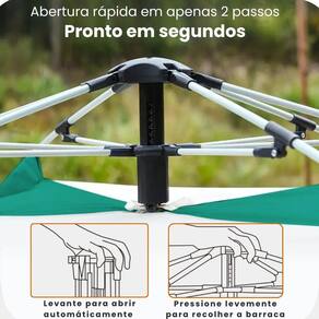 Abra e esteja pronto em segundos Com a Barraca Automática Revomax, acampar nunca foi tão simples. Basta levantar a parte superior e, em segundos, ela se sozinha sem esforço, sem complicações. A estrutura inteligente oferece um sistema prático e seguro, ideal para quem valoriza tempo e eficiência, Possui 2 portas e 2 janelas, garantindo excelente ventilação e praticidade no uso. Dobrar e guardar Em menos de 1 minuto, ela está embalada e pronta para a próxima aventura. Pode acomodar até 5 pessoas sentadas ou 3 adultos deitados, graças à sua maior dimensão de 210cm de comprimento. Ficha Técnica: Marca: Revomax Cor: Verde Capacidade: de 4 à 5 pessoas Dimensões montada: 210cm comprimento x 200cm largura x 135cm altura Material da barraca: Poliéster resistente Estrutura: Varetas flexíveis de fibra de vidro Tecido 210D à prova d'água Tecido interno: gel prateado UPF50+ Proteção duradoura contra os raios ultravioleta Tela de malha de alta densidade contra mosquitos Acompanha: - 01 barraca - 01 bolsa de transporte - 08 estacas para fixação - 04 cordas de amarração Indicação de uso: Camping, praia, pescaria e aventuras ao ar livre 1. A barraca é impermeável Sim, ela é feita com material resistente à água, ideal para proteger em caso de chuvas leves e moderadas. 2. Quantas pessoas cabem na barraca Ela comporta confortavelmente até 3 pessoas de porte médio 210cm deitadas lado a lado ou 5 pessoas sentadas. 3. A montagem é fácil Sim, a barraca possui estrutura simples e pode ser montada por uma pessoa em poucos minutos. 4. Cabe em qualquer tipo de mochila ou é muito volumosa Ela acompanha uma bolsa compacta de transporte, ideal para mochilas de camping e organização no carro. 5. As estacas e cordas já vêm com o produto Sim, o kit já inclui 08 estacas e 04 cordas para a fixação adequada da barraca. Marca: Não Informado