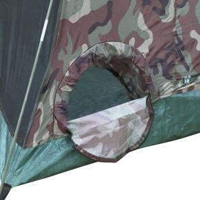 Material Estrutura: Varetas de fibra de vidro na cor verde militar interligadas por elástico interno e fabricadas com tecnologia NANO-Fiber e com material 100% virgem. Material Interior: Poliéster 190T respirável e tela mosquiteiro No-see-um Material Piso: Polietileno de alta resistência e anti-fungo Material Sobreteto: Poliéster 190T laminado com poliuretano e 1200mm de coluna d'água, camuflado, costura selada termo-soldada e proteção UV Medidas - A x L x C (m): 1,30 x 2,10 x 2,10 Tipo: Barraca iglu com sobreteto completo Cores: padrão camuflagem