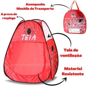 Cabana infantil teia de aranha Leve com você brinque onde quiser Um espaço exclusivo para as crianças brincarem e soltarem a imaginação Prática e moderna, a barraca portátil teia da aranha, conta com sistema pop up, ou seja, é só abrir e... Pronto A barraca estará montada. Para fechá-la, basta torcer as extremidades. Depois de desmontada, não ocupa muito espaço, facilitando o transporte. O produto tem como diferencial a sua estrutura antialérgica em poliéster com aberturas que facilitam a ventilação. especificações: Tamanho aproximado da cabana montada: 90 cm altura x 70 cm largura x 70 cm comprimento Composição/material: poliéster e em aço. Idade recomendada: a partir 3 anos Possui selo do inmetro Ce-bri/innac - 02316-11a Nm 300/2002 conteúdo: 1x barraca 1x bolsa para transporte observações: O valor anunciado é referente a uma unidade; Após a confirmação do pagamento, o envio será realizado em até 1 dia útil; Esta loja possui mais de 1.000 brinquedos diferentes, basta acessar a pagina da loja e conferir. Marca: Não Informado