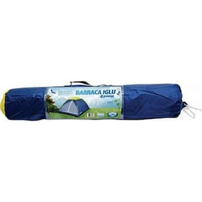 - Barraca Iglu para 4 pessoas - Barracas fáceis de montar com peso e volume reduzido devido a sua estrutura em varetas de fibra de vidro interligadas - São confeccionadas em poliéster, a costura entre o piso e o dormitório é invertida, evitando vazamentos de água para o interior da barraca e o piso é confeccionado em polietileno (ráfia) reforçado, além disso elas possuem sacola de nylon para transporte e porta dupla com tela de mosquiteiro