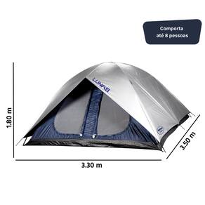 A Barraca Luna para 8 pessoas é tudo que os clientes estavam esperando. Esta barraca é ideal para uma família grande ou um grupo de amigos, pois é possível dividi-la em dois quartos. Ela tem cinco portas, duas na frente, duas atrás e uma entre as divisórias. Possui 3,50m x 3,50m de área e 1,80m de altura, bastante espaço para quem quer acampar com conforto.