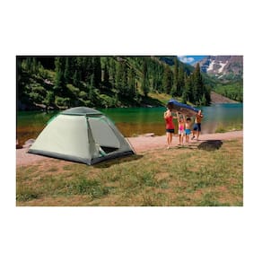 Fabricante: Coleman Modelo: Aruba 10 Minutos para montagem média Piso com costura invertida Teto de Poliéster Respirável Estrutura de Aço Tubular Sistema WeatherTec Coluna D'água: 600mm Dimensões do produto mm : 2440 C x 1980 L x 1300 A Cor predominante: Cinza Peso: 3Kg Capacidade: 2 colchões de casal ou 4 pessoas no saco de dormir Marca: Não Informado